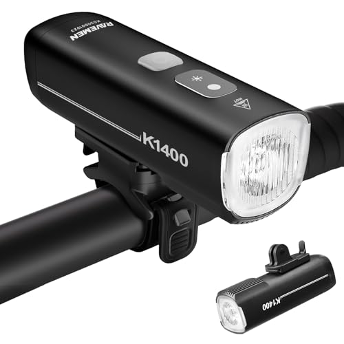 RAVEMEN K1400 Bike Headlight, 1400 Lumen Bike Front Light with Auto ON/Off and Sensor for High/Low Ambient Light IPX7 Waterproof USB C for Day Night Riding, 2 Mounting Options