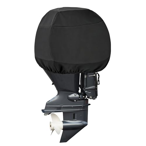 Explore Land Outboard Motor Cover - Waterproof 600D Heavy Duty Boat Engine Hood Covers - Fit for Motor up to 25 HP, Black