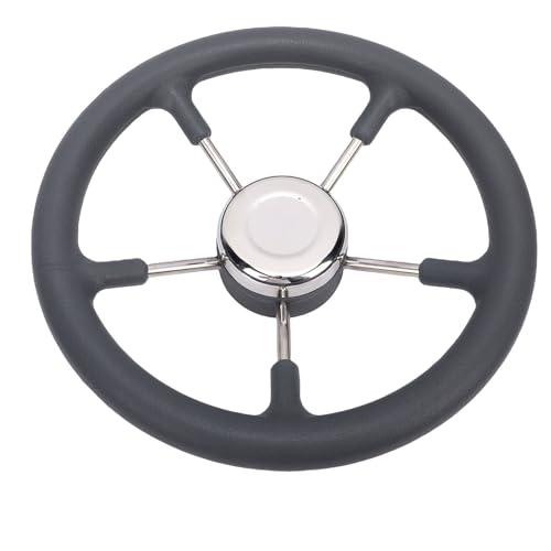 Hi.FANCY Stainless Steel Boat Steering Wheel with Black Foam Grip and Knob,5 Spoke Boat Marine, Enhanced Performance