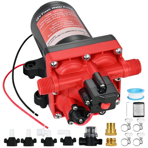 12V Pump,7.0GPM,70PSI Diaphragm Water Pump,5 Chamber Self-Priming RV Fresh Water Pump with Pressure Switch and Strainer,Ideal for RV,Marine,Yacht Sprayer and Pressure Washing-1/2 MNPT Connection