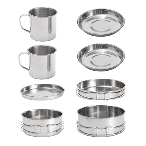 1 Liter Camping Cookware Mess Kit Backpacking Gear & Hiking Outdoors Bug Out Bag Cooking Equipment 10 Piece Cookset | Lightweight, Compact, & Durable Pot Pan Bowls - Free Folding Spork, Nylon Bag