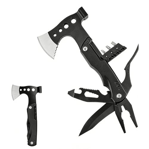 NIPURA Outdoor Camping Hatchet Axe, Tactical Axe And Hammer, Small Fire Starter And Whistles, Essential Emergency Survival Tool, Multifunctional Tomahawk with Sheath, Military Grade Hiking Hunting