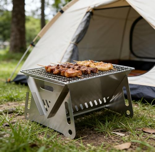 Wood Burning Folding Camp Stove Stainless Steel Grid, JEMLYD Stainless Steel Collapsible Backpacking Stove for Outdoor Cooking, Hiking & BBQ (Samll)