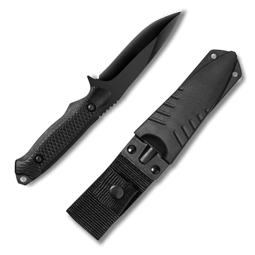 Fixed Blade Camping Knife, Hunting Knife with Nylon Sheath in Non-Slip Handle and High Carbon Stainless Steel Black Blade, Tactical Tools for Outdoor Hiking, Fishing, Carving, Diving, Bowie Combat Knife Everyday Carry