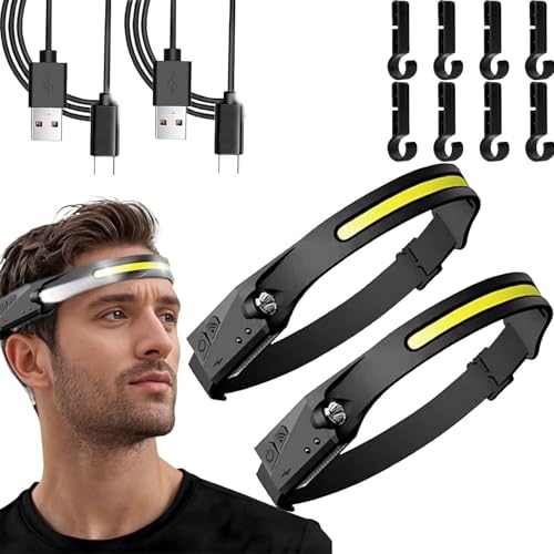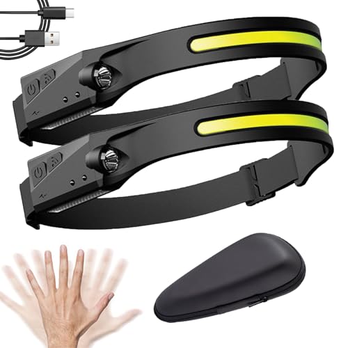 Headlamp Rechargeable 2PCS, 230掳 Wide Beam Head Lamp LED with Motion Sensor for Adults - Camping Accessories Gear, Waterproof Head Light Flashlight for Hiking, Running, Repairing, Fishing, Cycling