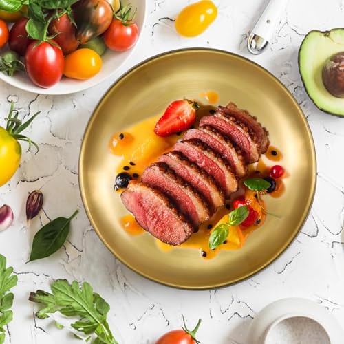 HEIHAK 6 PCS 10 Inch Stainless Steel Plates, Reusable Round Metal Dinner Plates Camping Plate, Kitchenware Dinner Dishes for for BBQ Steak, Dishwasher Safe, Gold