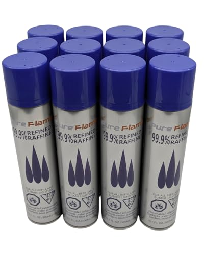 Pure Flame Butane 99.9% Refined 300ml (165g) 鈥 Ultra Pure Lighter Refill for Torch Lighters, Culinary Kitchen Torch, BBQ & Whiskey Smoker 鈥 Professional Grade Zero Impurity Butane 鈥 Pack of 12