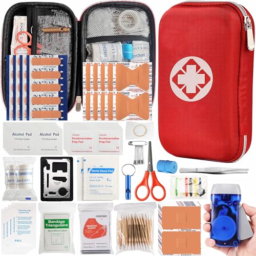 YouNuo First Aid Kit, 143 Pieces First Aid Emergency Kit, Waterproof Portable Compact Emergency Bag, Ideal for Home, Office, Car, Travel, Outdoor, Camping, Hiking, Boating (Red)