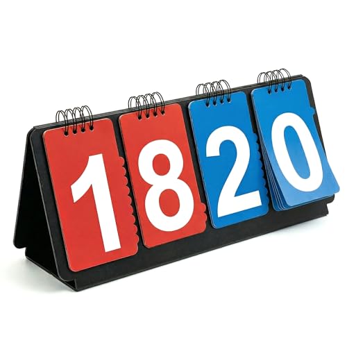 ShYeenei Manual Flip Scoreboard, Portable Multi-Sport Scoreboard Flipper with Detachable Numbers, 4-Digit Counter Score Keeper for Basketball/Baseball/Volleyball/Soccer