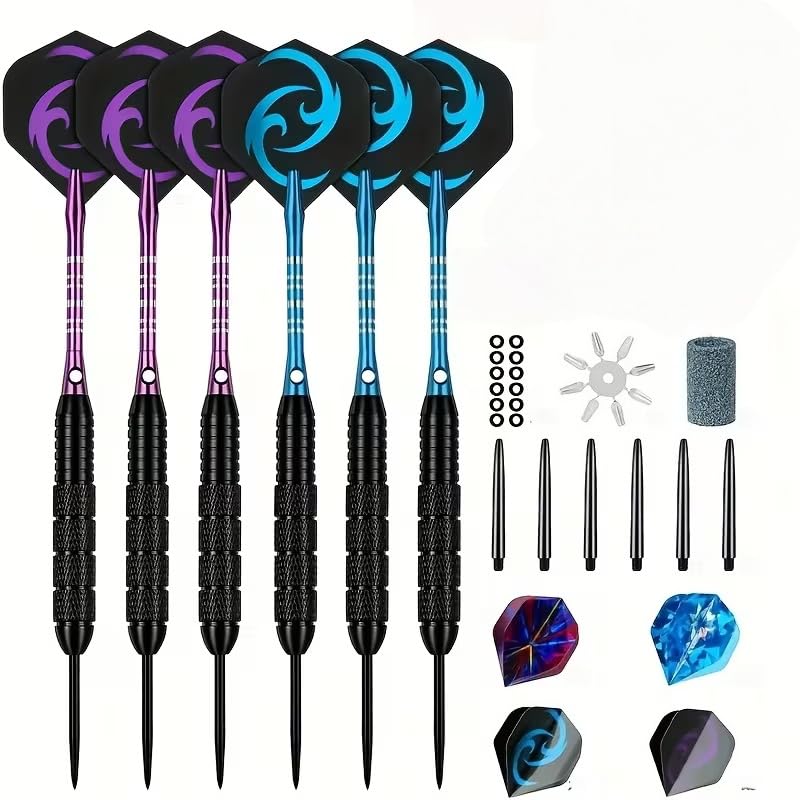CareGames Steel Tip Darts, Professional Metal Darts,12pcs 18 Gram Darts Metal Tip Set with 12 Shafts,24 Extra Flights,2 Flight Protectors and Dart Sharpener,Metal Darts for Dartboard