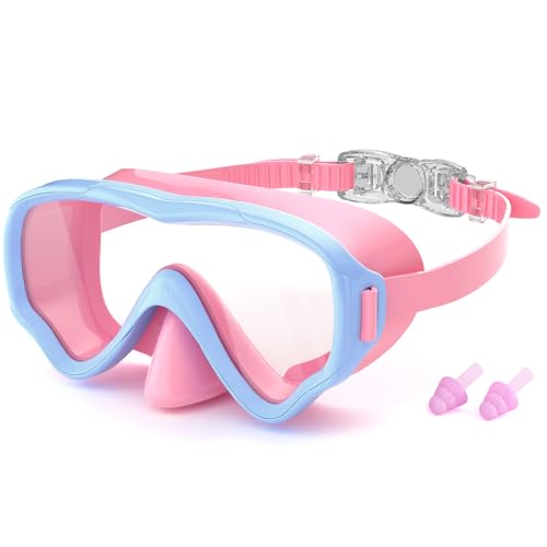 Kids Swim Mask - 180掳 Anti-Fog Child Snorkeling Diving Mask Leak-Proof Kids Swim Goggles with Nose Cover and Fabric Strap for Boys & Girls Ages 4-14 Swimming, Diving and Snorkeling
