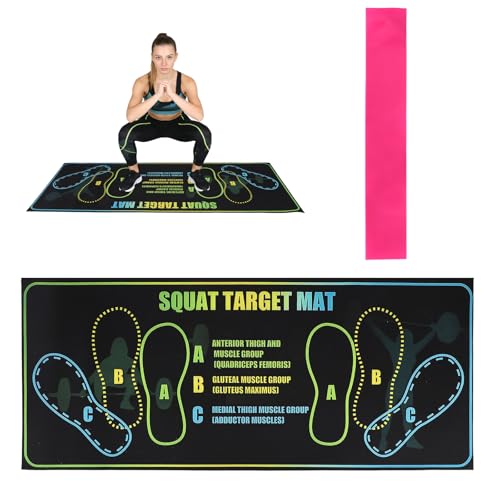 Squat Mat with Foot Position, 80x34cm/31.5x13.38in Large Yoga Workout Non-Slip Exercise Pad for Squat with Resistance Band Training Accessories for Home Gym Fitness Improves Muscle Activation & Safety