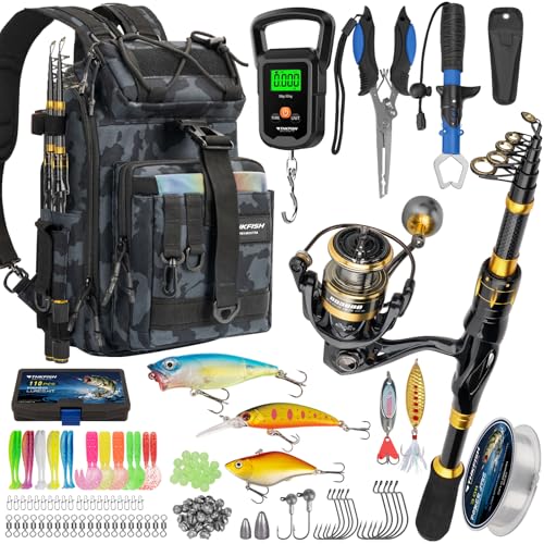 PLUSINNO Fishing Kit with Tackle Box, Rod and Reel Combo for Fishing Gear, Fishing Gifts for Men with Fishing Tool Kit...