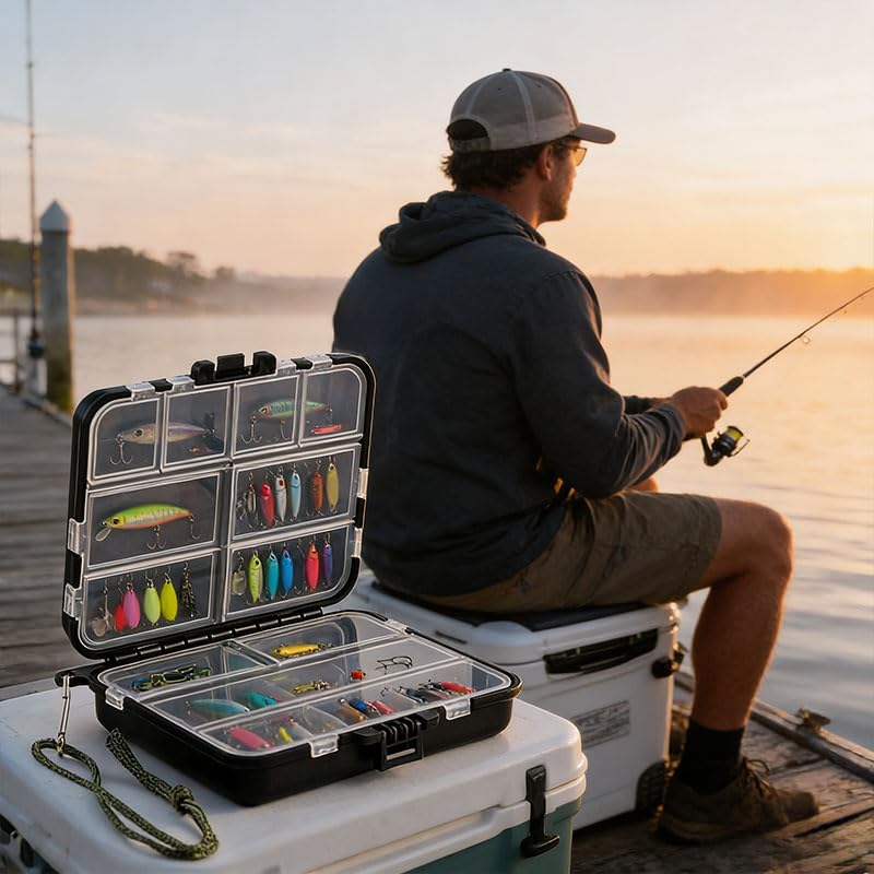 10/14 Compartments Double-Sided Fishing Lure Hook Tackle Box Visible Hard Plastic Clear Fishing Lure Bait Squid Jig Minnows Hooks Accessory Storage Case Container (Clear-14 Slots)