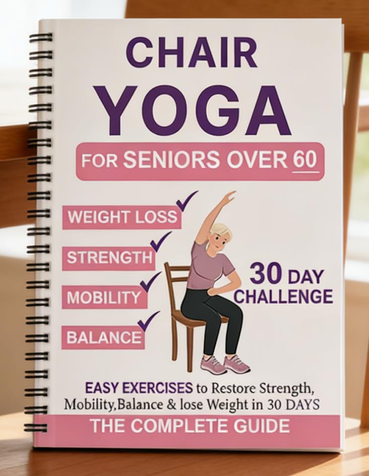 Chair Yoga for Seniors Over 60 Book & Chart 鈥 30-Day Challenge, Gentle Seated Yoga Guide, Chair Yoga for Weight Loss & Flexibility, Senior Chair Exercises for Women & Men, 8.5x11" Book on Chair Yoga