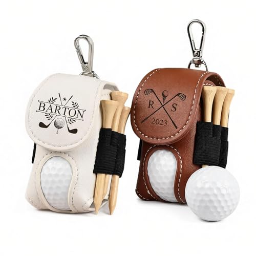 Personalized Golf Balls Bag Father Golf Ball Bag Custom Name Initial Pouch for Golf Ball Tees Holder Premium Leather Holder with Clip Engraved Golf Gifts for Men Women Golfers, 2 Ball Capacity