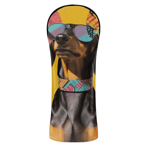 Dachshund Dog 80s Golf Cover Set Pu Leather with Interchangeable No. Tags for Driver Driver Headcover