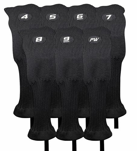 Majek All Hybrid Head Cover Golf Club Black Sleek Tight Fit Headcover Set 4-PW Acrylic Head Covers 4 5 6 7 8 9 PW Easy to See Large White Embroidered Numbers