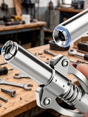 LxcshLjx 5pcs Grease Gun Fitting Kit, Double Handles Grease Gun Coupler, Lube Coupler, Grease Gun Coupler Adapter and Grease Needle Nozzle, Needle Tip Dispenser 12" Spring Flex Hose Fit 1/8" Npt Ends