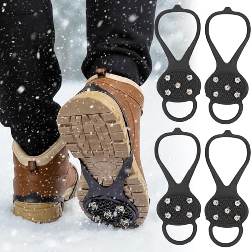 Ice Cleats for Boots & Shoes 鈥 10 Carbon Steel Spikes Micro Crampons, 3D Non-Slip Sole, Stay-ON Secure Fit, Reflective Heel, Anti-Slip Traction for Winter Walking on Ice & Snow