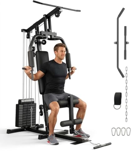 GarveeLife Home Gym Machine System with 100LBS Weight Stack, Multifunctional Weight Machine, Full Body Workout Station Exercise Equipment, All in One Home Gym with Pulley System for Strength Training