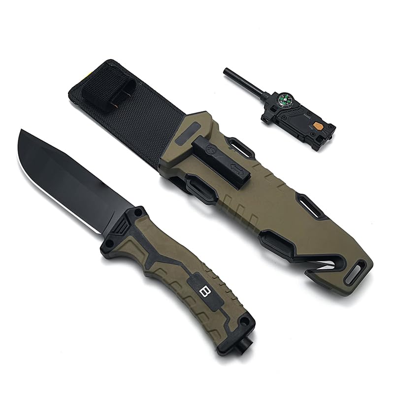 BA-KOR DC53 Steel 38CM (15.2IN) Full Tang 6mm Thick Fixed Knife+Sheath&(5.9IN) Cerium Igniter, Suitable for Outdoor Hunting, Camping, Survival Exploration, EDC
