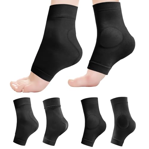 Sekonow 2 Pairs Ankle Heel Protector Gel Sleeve, Malleolar Achilles Tendon Padded Skate Socks Cushion with Silicone Pads for Figure Skating, Roller, Hockey, Boots, Shoes, Black, Ankle + Heel