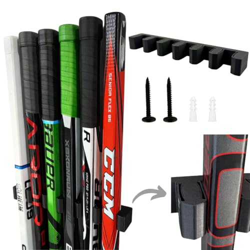 Hockey Stick Wall Mount Holder | Capable of Holding Up to 6 Ice Hockey Sticks | Only Compatible with Senior/Adult Sticks | All Required Hardware Included