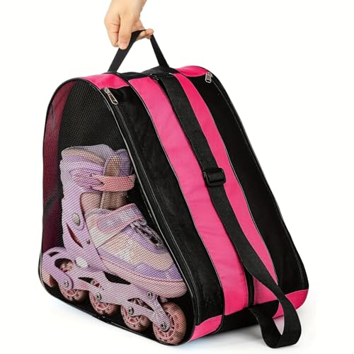 FAWAIKTU Ice Skating Bag, Breathable Roller Skate Bag to Carry Skates, Oxford Cloth Accessories for Kids, Men, Women, Adults (Pink)