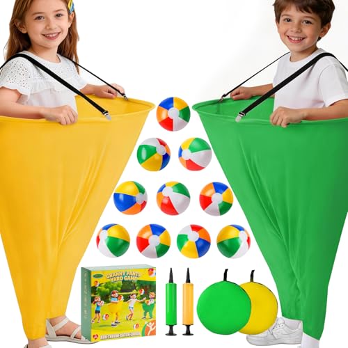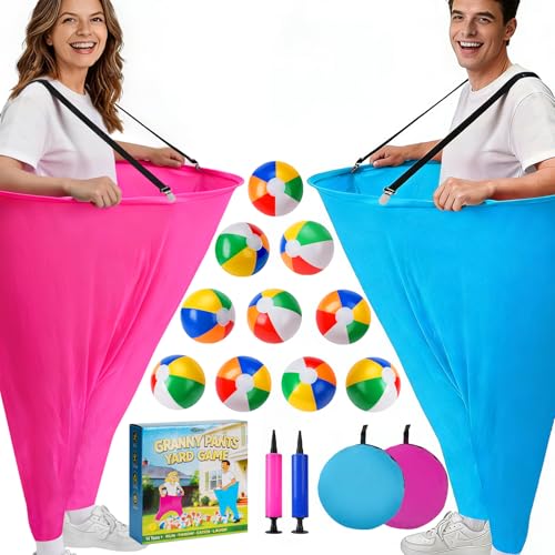 17 PCS Granny Pants Yard Game Easter Games Set, 2 Oversized Granny Funny Pants with 10 Balls, 2 Air Pumps, Outdoor Tossing Games for Kids Backyard Lawn Easter Carnival Party Reunion Gathering 4+ Ages