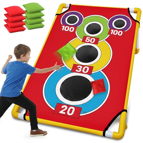 ROPODA Portable Cornhole Board Set,24 x 16 in Corn Hole Games for Adults with 8 Bean Bags, Lightweight Aluminum Alloy Edging Cornhole Set for Outdoor Games