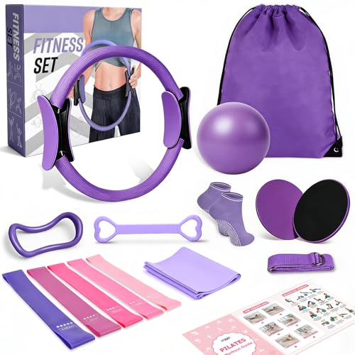 15 Pcs Pilates Equipment Kit for Women, Better Me Pilates Kit, Home Pilates Kit for Women with 14" Ring, 10" Ball, 5 Resistance Bands, Stretching Strap, Sliding Disks, Pilates Essentials Kit for Home