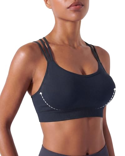 Strappy V Neck Sport Bra for Women, Multipack Padded Seamless Wireless Comfortable Racerback Bralette Workout Yoga Bra Pack