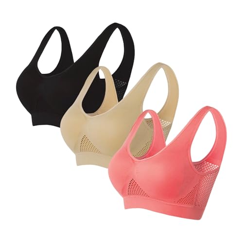 3 Pack Sports Bras for Women Breathable Plus Size Anti-Sagging Breasts Wireless Bra Comfort Padded Push Up Bralettes
