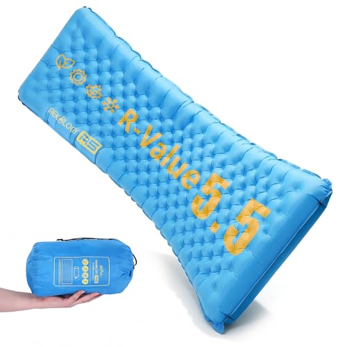 LILTSDRAE Camping Sleeping Pads锛孍xtra Thick 5 Inch Inflatable Sleeping Mat with Pillow Built-in Pump锛孫versized Mattress Super Portable Backpacking Sleeping Pad (Blue, Single)