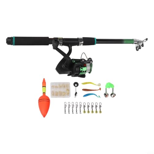 Goture Black and Green Telescopic Fishing Rod Kit, Complete Accessories, Lightweight Carbon Fiber, Portable Design, 5.91FT(1.8m) for Freshwater & Saltwater Fishing