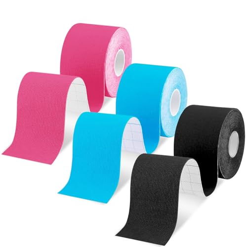 Agbihtb Kinesiology Tape, 3 Rolls Athletic Tape - Waterproof Sports Tape & Hypoallergenic Kinetic Tape, K Tape for Muscle Knee Shoulder Pain Relief & Joint Support (Uncut 3 x 16.4 ft, Black/Blue/Pink)