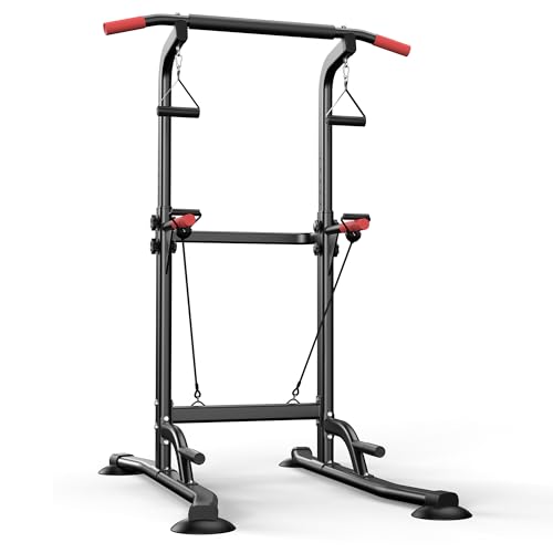 SogesPower Power Pull Up Bar Tower Dip Station Workout for Home Gym Multi-Function Adjustable Height Strength Fitness Strength Training Equipment Dip Stands