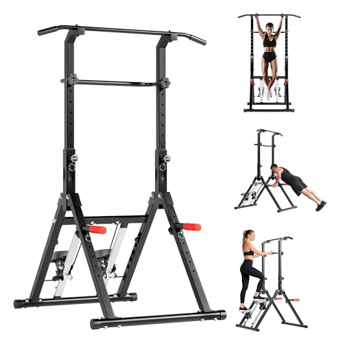 DlandHome Pull Up Bar, Dip Station Adjustable Height, Power Tower Pull Up Bar Free Standing for Home Strength Training Fitness Workout Station