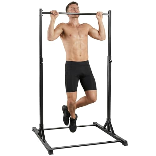 Soozier Portable Pull Up Station, Height Adjustable Pull Up Bar with 8 Levels, Multi-Functional Free Standing Power Tower for Home Gym Strength Training, 440LBS Capacity, Black