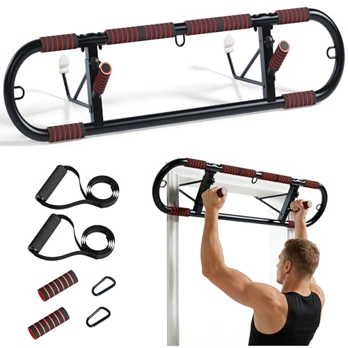 AmazeFan Pull Up Bar Doorway with Ergonomic Grip - Fitness Chin-Up Frame for Home Gym Exercise - Multi-Angle Grip - 2024 Upgrade Smart Hook (Fits Almost All Doors)