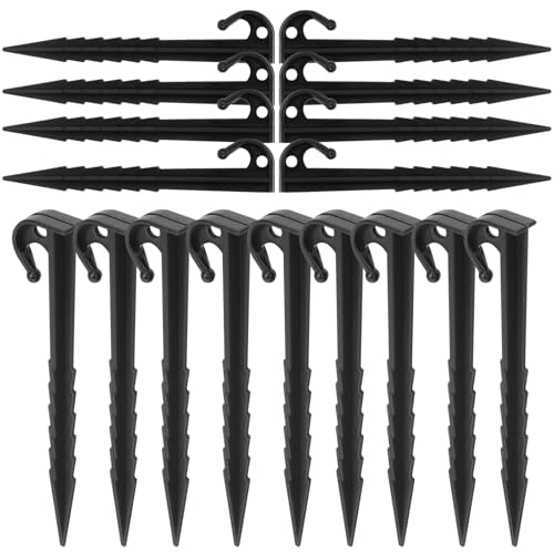 Hacaroa 16 Pack Rebar Tent Stakes Heavy Duty, 12 Inch Ground Anchors J Hook Garden Stakes, Glavanized Metal Fence Stakes for Trampoline, Canopy, Yard, Chisel Point End