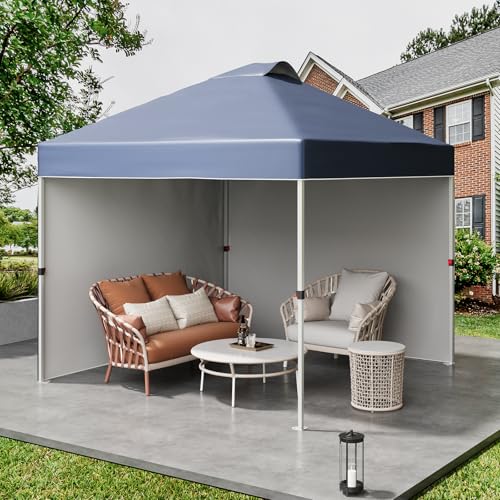 GarveeLife 10x10 Pop Up Canopy Tent with Two Side Walls, Instant Canopies Shelter with Wheeled Carry Bag & 4 Sandbags, Portable Outdoor Sun Shade for Camping, Beach, Parties - Navy Blue