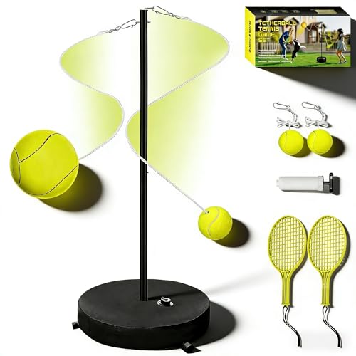 Lieetoun [2025 Upgrade] Tetherball Tennis&Tetherball Set,Heavy Duty Tetherball Equipment with 95" Adjustable Height Pole,2 Tennis Balls,2 Rackets,1 Tetherball with Rope,for Backyard,Beach or Home