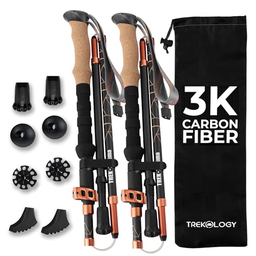 CASCADE Trekking Poles Ultra Light 100% Carbon Fiber Trekking, Walking, and Hiking Poles - Ultra Light, Ultra Durable, Quick Lock Feature for Easy Height Adjustment from 26鈥 to 54鈥