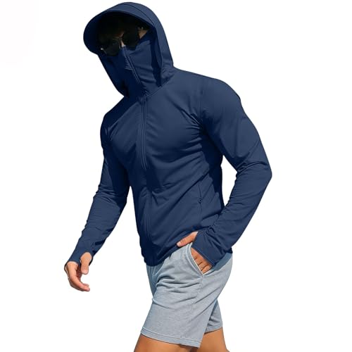 Sun Protection Fishing Shirts for Men UPF 50+ Long Sleeve Hoodie with Face Mask UV Quick Dry Hiking Full Zip Jacket