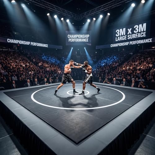VEVOR 10x10 ft Wrestling Mat Inflatable, Martial Arts Thick Mat for Home Gym Exercise, PVC Foldable Training Mats with Circles and 600W Air Pump, for Gymnastics, Tatami, Jiu Jitsu BJJ MMA Judo, Black