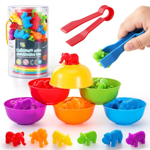 DFQiQiQinH Counting Animals Montessori Toys锛孍ducational Sensory Bin Toys锛孋olor Sorting Toys for Toddlers锛孎ine Motor Skill Toys, Montessori STEM Toy Sets for Kids锛孴he Best Gift for Children