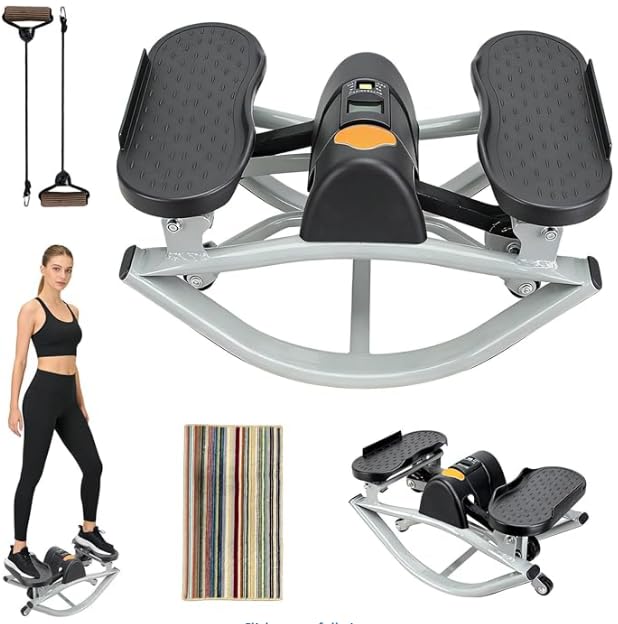 The Rock Stepper, Lateral Rocking Side to Side Exercise Machine with Digital Monitor & Resistance Bands, Home Workout Equipment for Legs Glutes Abs, Portable Cardio Fitness Stepper for Women Men