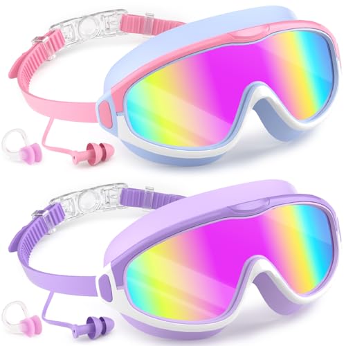 VegoVia Kids Swim Goggles 2 Pack, Anti-Fog UV Protection Wide View Swimming Goggles for kids 3-15 Youth Boys Girls Toddler